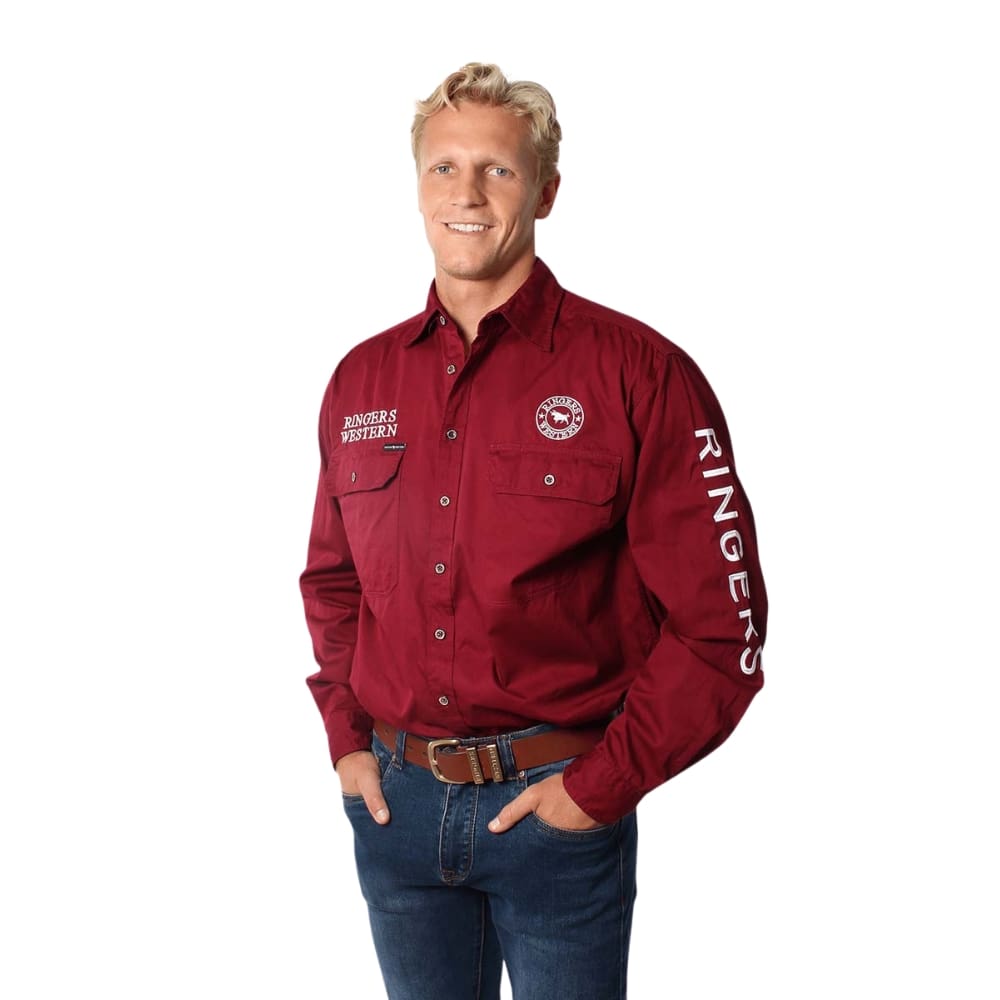 Ringers Western Hawkeye Men’s Full Button Work Shirt – Burgundy