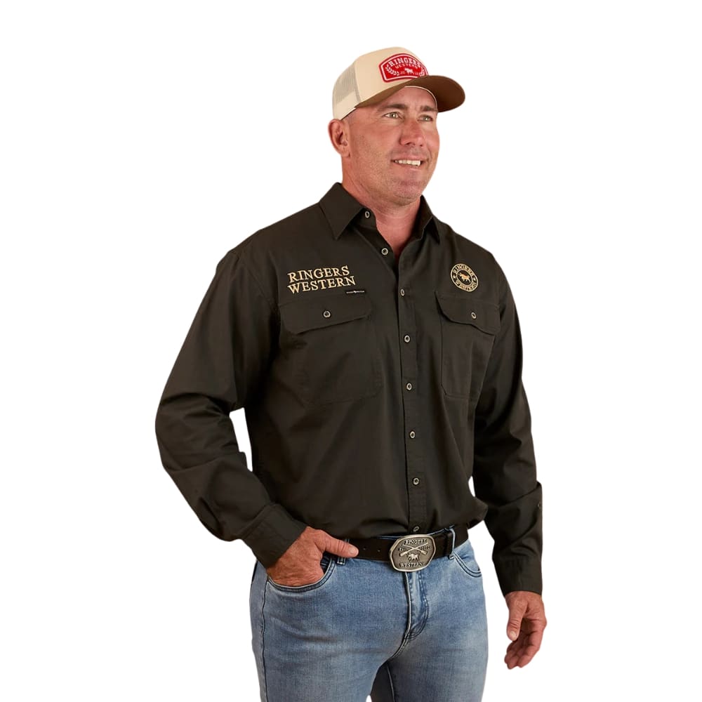 Ringers Western Hawkeye Men’s Full Button Work Shirt – Charcoal Dark Sand