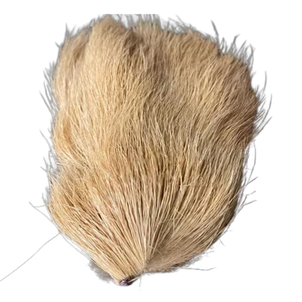 Like deer body hair, belly hair spins easily on the hook, making it ideal for tying bass bugs, poppers, and other spun-hair fly patterns. Its buoyancy and structure help create durable, floating flies that maintain their shape and action.
