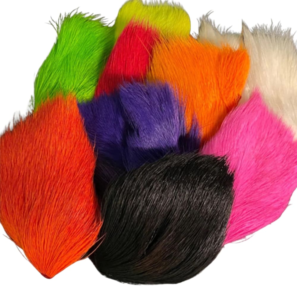 Compared to standard deer body hair, belly hair has a slightly different texture and lacks the natural mottling often found in body hair. This cleaner fibre structure allows for stronger, more consistent dyeing and produces bold colours that stand out in the water.